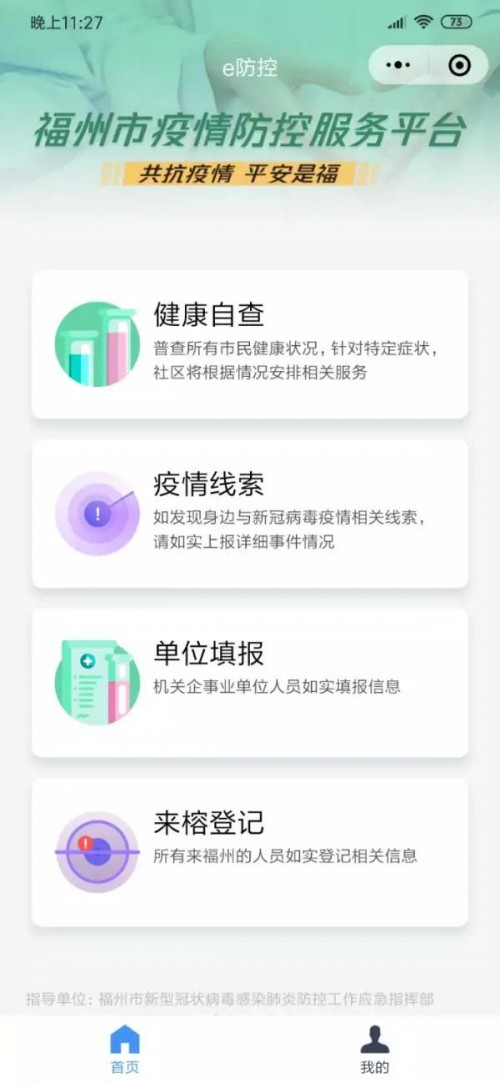2月5日,福州"e防控"小程序正式上線,與廣州的"穗康"小程序很相似,支持健康自查、疫情線索和單位填報(bào)等。